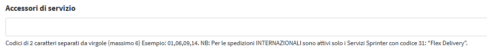 È possibile inserire fino a un massimo di 6 codici, ciascuno corrispondente a un servizio opzionale offerto dal corriere o dal sistema logistico.
