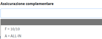 • F = 10/10 : Seleziona questa opzione per attivare una copertura assicurativa fissa pari al valore dichiarato della merce (copertura 10 su 10). In pratica, l’importo assicurato corrisponde esattamente al valore indicato nel documento di spedizione o nella fattura commerciale.