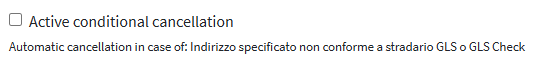9. L’opzione Active conditional cancellation consente di attivare la cancellazione automatica della spedizione in caso di errori o incongruenze nell’indirizzo indicato.