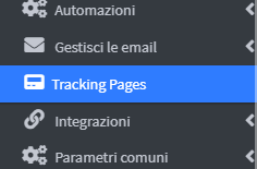 1. Dalla dashboard principale, cerca l'opzione "Tracking Page" nella sezione Configurazione del menù di sinistra.
