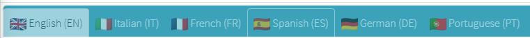1. Nella pagina di Editing, le lingue disponibili sono presentate secondo l’ordine dei tab. Per impostazione predefinita, la lingua selezionata corrisponde a quella del browser dell’utente. Qualora questa non fosse disponibile, il sistema imposterà automaticamente la lingua predefinita