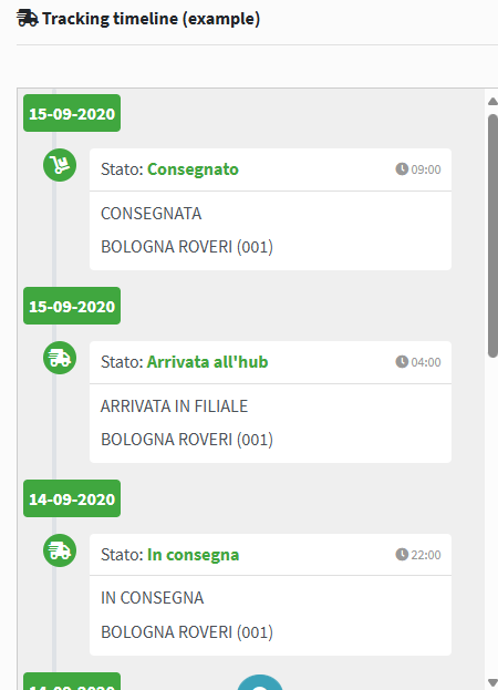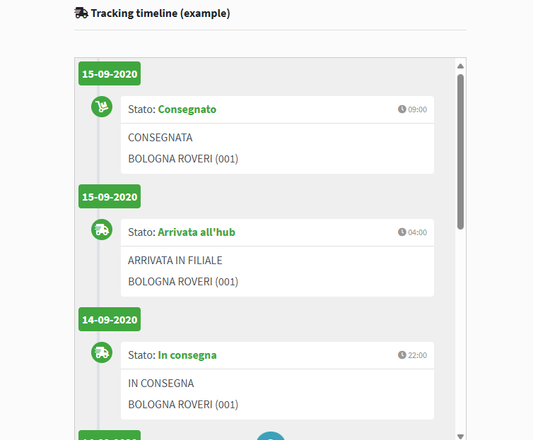 Questa pagina fornisce informazioni in tempo reale sullo stato e la posizione del pacco del cliente. In altre parole, una tracking page permette di seguire il viaggio del pacco, dando sicurezza e tranquillità a chi si è affidato ai nostri servizi. È un elemento fondamentale che migliora l'esperienza di acquisto online, rendendola più trasparente e affidabile.