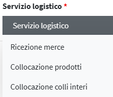 2 Durante la creazione di una tariffa, il primo campo obbligatorio da compilare è Servizio logistico. Questo campo determina la tipologia di attività logistica alla quale verrà associata la tariffa.