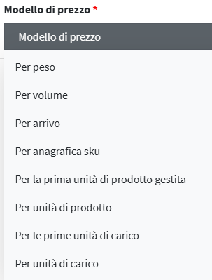 3. Il campo "Modello di prezzo" serve a definire la logica con cui verranno calcolati i costi associati a un prodotto, spedizione o servizio. La scelta del modello influisce direttamente sulla fatturazione, la gestione del magazzino e l’ottimizzazione dei costi: