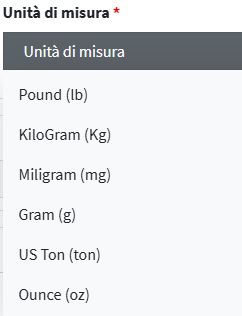 5. Nel menu a tendina Unità di misura scegli l'unità di misura desiderata.