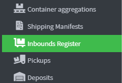 1. Click on the Inboud Register item in the left menu under the Operations item.