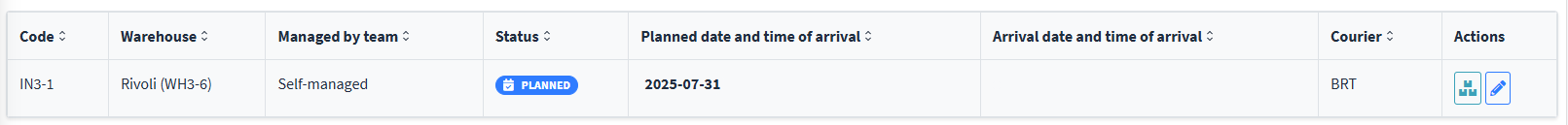 - Actions → Quick buttons to edit, delete or manage the arrival.