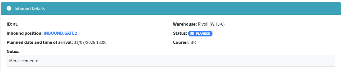 - Entry position : identifies the entry position of the goods e.g. INBOUND.GATE2.