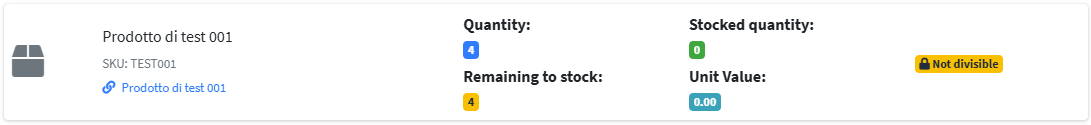 - Remaining quantities to be stored still to be placed in the warehouse.