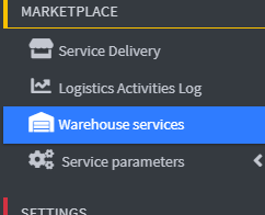 2. To access, click on the Warehouse Service item in the Marketplace section in the left menu.
