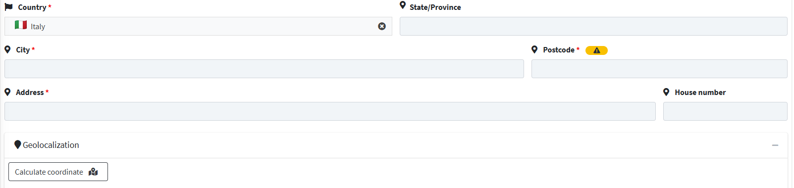 6. In the Free Address Search search field, you can start typing the address and select it from the Google Maps suggestions list, and the subsequent data will be filled in automatically using a Geolocation map.