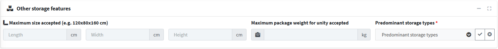 Maximum storage volume (m³): indicate the total available volume, also taking into account the useful height of the warehouse. Value in cubic meters (m³).