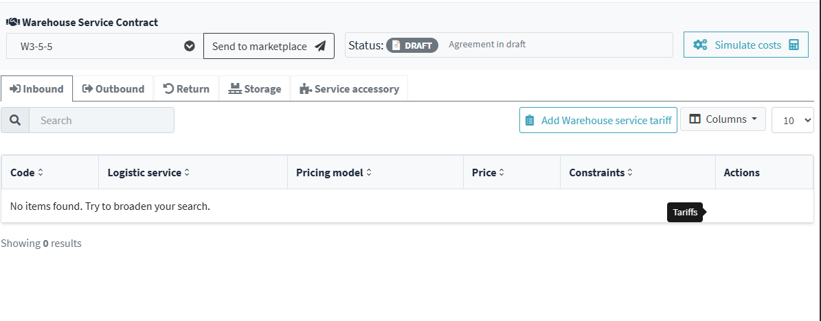1. The system allows you to configure a rate associated with a specific logistics service within a third-party managed warehouse.