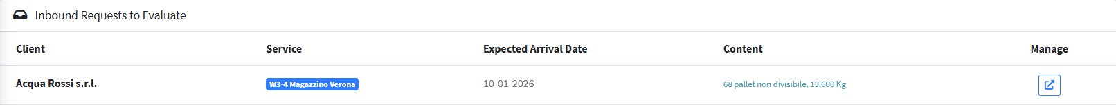 3. Inbound Requests to Evaluate lists customer inbound requests, with useful details for evaluation and management: