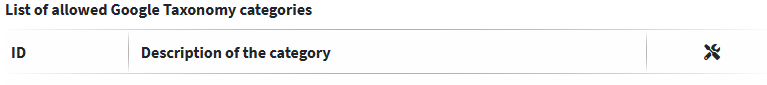 7. The Google Taxonomy Category List section allows you to view and maintain the Google Taxonomy categories currently associated with the classification rules configured in the system. The goal is to ensure: