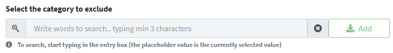 8. The Select category to exclude search field allows you to define semantic exclusion criteria, removing specific categories from the active classification. It is particularly useful for: