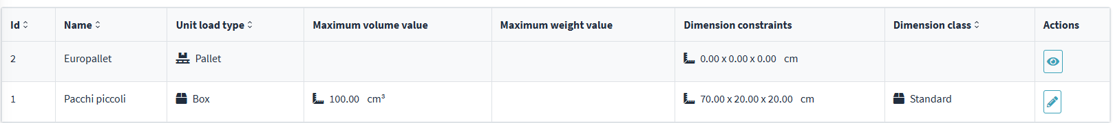 2. Once you enter the page, the table displays the list of currently configured constraints. Each row represents a load unit type.