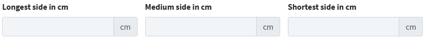 Enter the average width of the unit. This is useful for calculating horizontal space and pallet or shelf placement. - Shortest side in cm