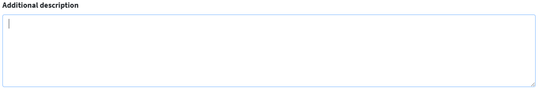 9. Additional Description is a free field for operating notes, technical specifications, or internal references. It may include codes, regulatory references, or usage instructions.